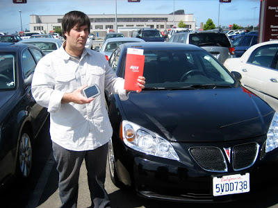 Garrett showing off our flashy GPS with our rental car – both a must for photography in San Francisco!
