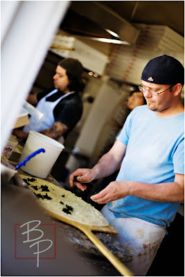 The place is very popular so they are constantly making fresh pizza.