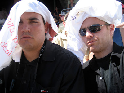 So I don’t know if I mentioned this, but the one downer of the weekend was that it was SUPER HOT! Jeremiah and I fashioned these wrap-like hats out of shirts in an attempt to shield ourselves from the sun. Did I mention it was hot?